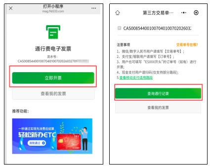 在收费站出口以现金方式缴费后,向收费员索取交易小票,通过微信扫描小票上的发票二维码,并在“粤通卡ETC”微信小程序上完成注册/登录后,按页面提示操作,即可完成现金发票开具。