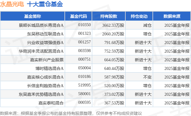 重仓水晶光电的前十大公募基金请见下表: