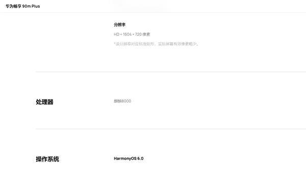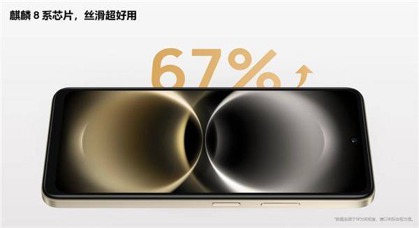 核心方面, 新机搭载麒麟8000芯片,出厂预装HarmonyOS 6系统,正面采用6.67英寸LCD屏,分辨率为1604*720,支持120Hz刷新率。