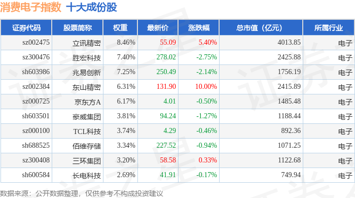 证券之星消息,4月9日,消费电子(980030)指数报收于746074.0点,涨87.0%,成交1141.9亿元,换手率202.0%。当日该指数成份股中,上涨的有21家,彩虹股份以10.0%的涨幅领涨,下跌的有28家,恒玄科技以3.18%的跌幅领跌。