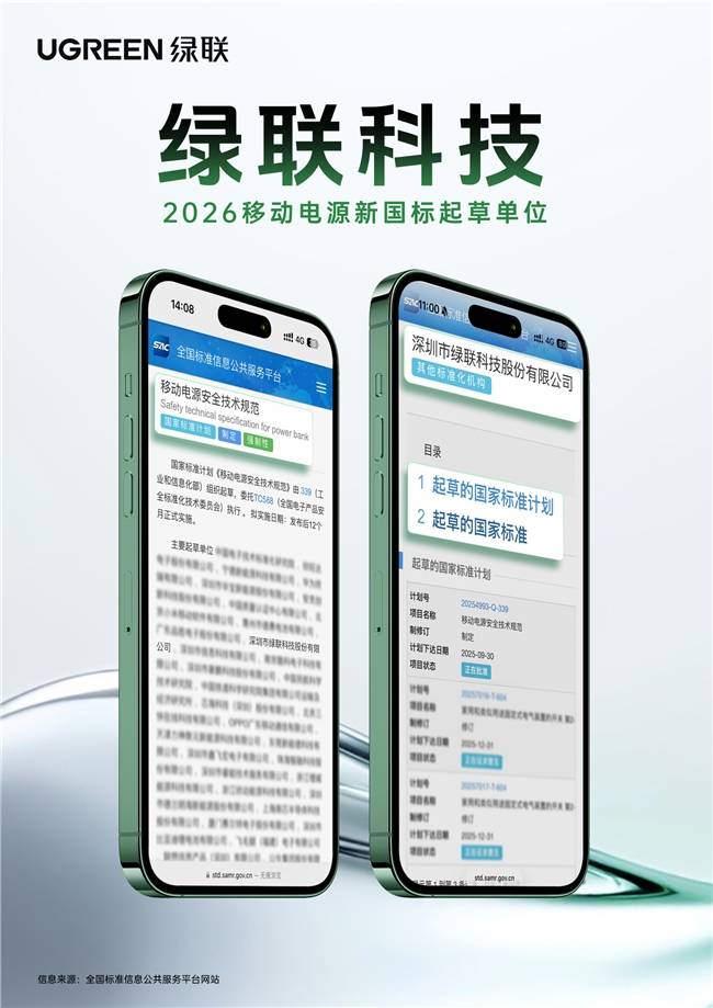 随着新国标的全面实施,我国移动电源行业将进入规范化、标准化发展的新阶段。绿联科技相关负责人表示,未来企业将继续紧跟国家产业政策导向,持续加大技术研发与质量管控投入,不断完善全链路安全保障体系,携手行业伙伴共同推动消费电子产业向高端化、智能化、绿色化方向迈进,为建设质量强国、制造强国贡献企业力量。