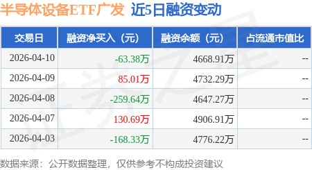 证券之星消息,4月10日,半导体设备ETF广发(560780)融资买入595.52万元,融资偿还658.9万元,融资净卖出63.38万元,融资余额4668.91万元。