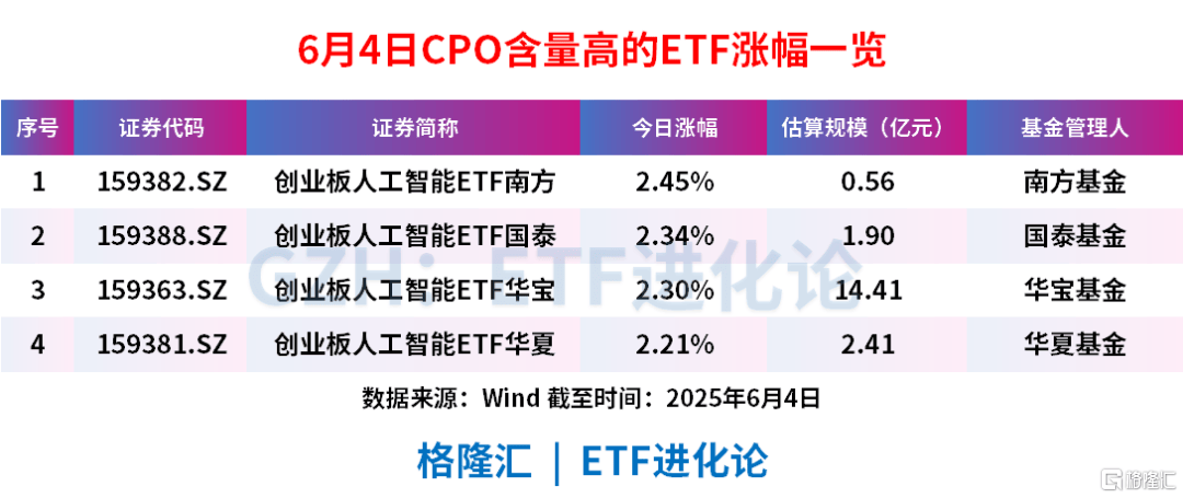 受此影响,A股的算力板块今日也全线反弹,CPO含量较高的ETF表现亮眼。