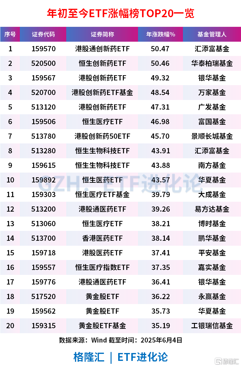 港股创新药ETF今年更是开启霸屏模式,甚至比当红炸子鸡——黄金股ETF还猛,港股通创新药ETF、恒生创新药ETF年内涨幅超50%,港股创新药ETF涨超49%。