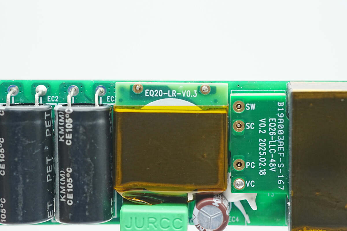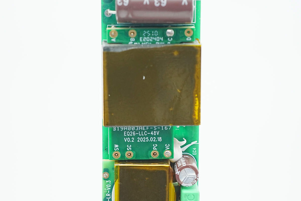 也是得益于MPS高集成电源方案以及英诺赛科氮化镓器件的使用,对于简化电路降低设计门槛,提升效率优化散热并获得更高功率密度,以及增强整体可靠性等各方面都很有帮助。此外PFC电感、谐振电感和LLC变压器均采用了PCB平面变压器技术,进一步压缩电源尺寸,让其使用更加灵活,能适配的场景更广泛。