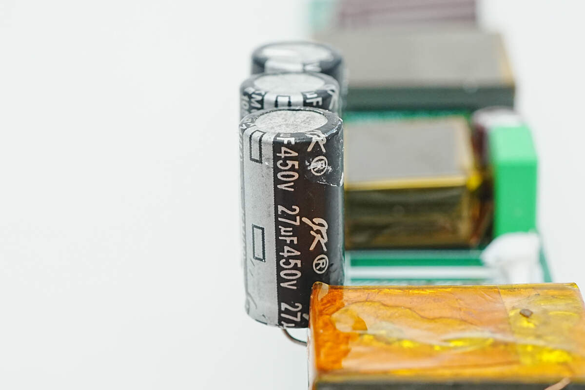 三颗高压滤波电解电容均来自军康,规格也都是450V27μF。