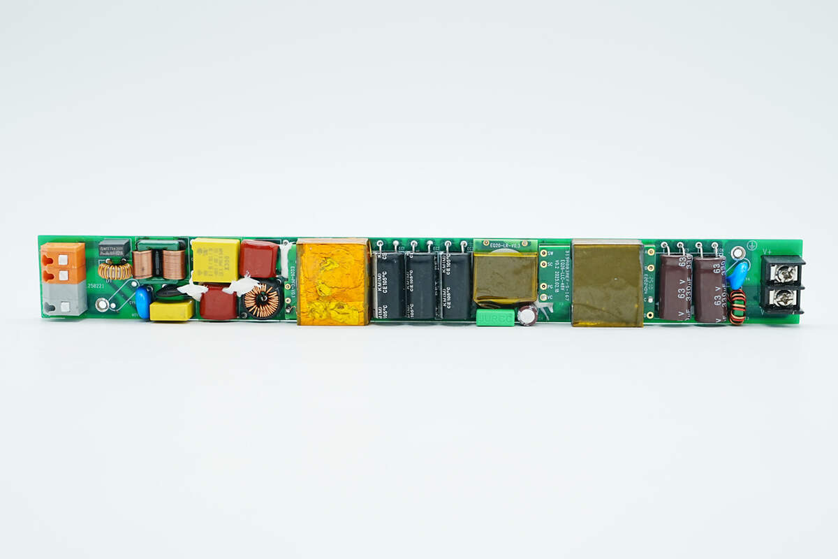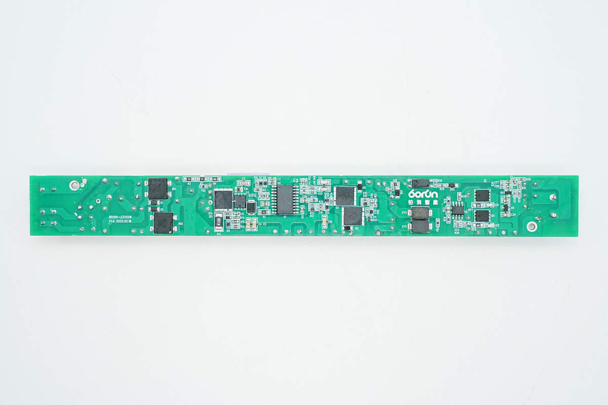 铂润智能近期推出了一款超薄、尺寸非常小的条形150W超薄氮化镓LED电源,这款产品整体PCBA高度低于14mm,长为242mm,宽为27mm,可在55℃环境下稳定工作。这款面向工业与智能照明的输出150W、48V恒压LED驱动参考设计,其输入电压覆盖180Vac-264Vac,标称输出为48V/3.125A,能够在230Vac满载条件下实现超过94%的转换效率。