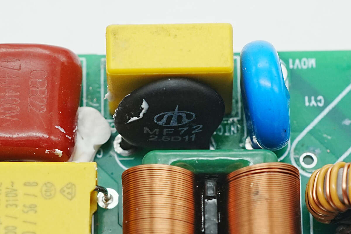 NTC热敏电阻来自时恒,为MF72系列,用于抑制上电浪涌电流。