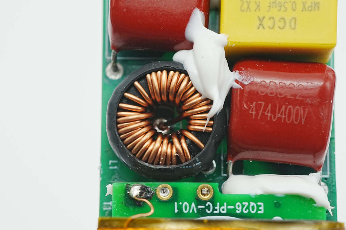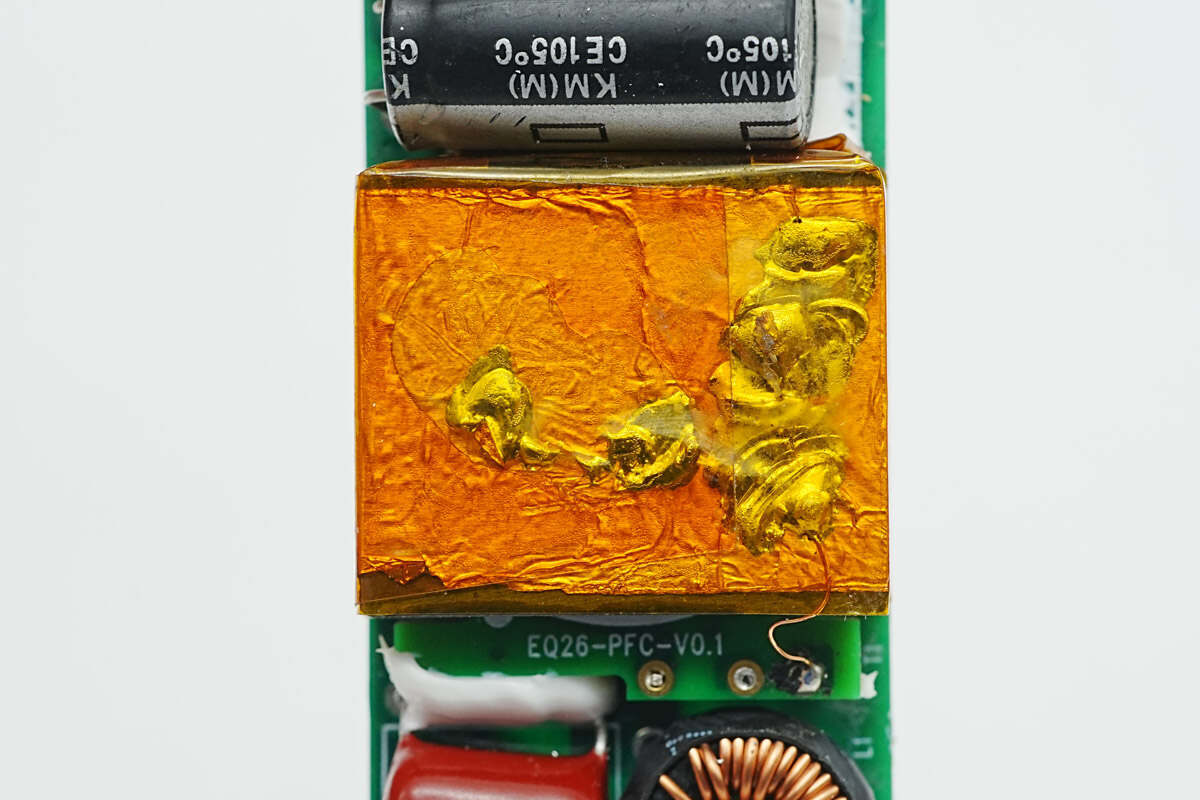 PFC升压电感来自铂润智能,型号BR-EQ26-PFC,包裹铜箔以及耐高温绝缘胶带。