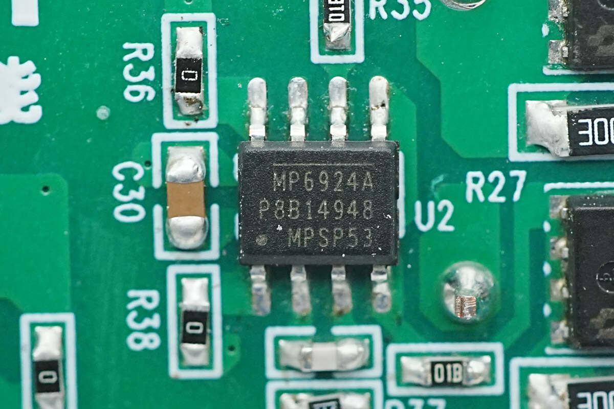 同步整流控制器来自MPS芯源系统,型号MP6924A,是一颗LLC同步整流控制器,具有更强的抗干扰度和快速关断功能,兼容CCM/DCM模式。MP6924A内部集成了两个同步整流控制器,分别用于LLC两个次级线圈输出的整流应用,适用于LLC转换器同步整流应用,采用SOIC-8封装。