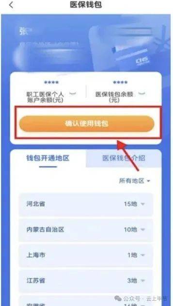 2.点击国家医保服务平台APP首页-医保钱包-确认使用钱包-立即确认-完成医保钱包功能开通。
