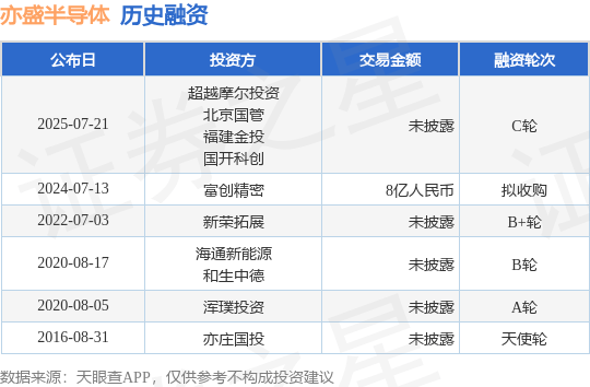证券之星消息,根据天眼查APP于7月21日公布的信息整理,北京亦盛精密半导体有限公司C轮融资,融资额未披露,参与投资的机构包括超越摩尔投资,北京国管,福建金投,国开科创。