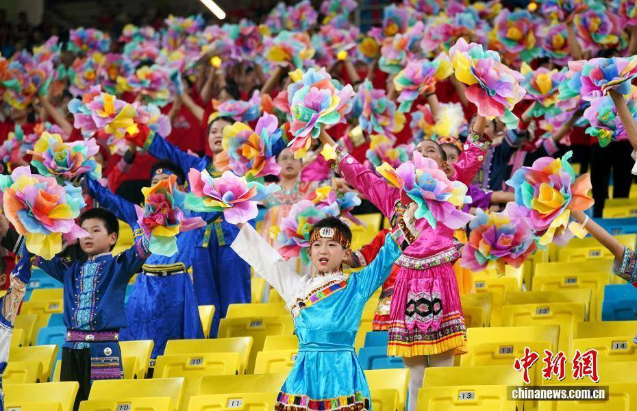 9月30日晚,四川成都,小学生在赛前表演文艺节目。当日,2025/2026亚足联冠军精英联赛第2轮在成都举行,成都蓉城队1比0胜韩国江原FC队。中新社记者 安源 摄
