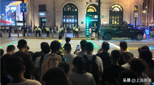 从傍晚开始,南京东路步行街朝外滩方向就实行了南进北出、慢进快出的交通管控,减缓了市民游客上江堤的步伐。