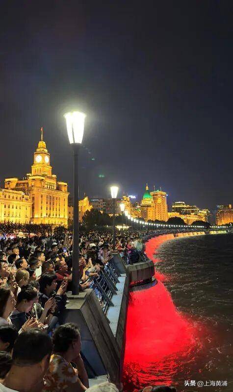 昨晚7点,记者在外滩现场看到,众多市民游客纷纷前来欣赏浦江两岸的璀璨夜景,为祖国庆生。亲水平台上人头攒动,热闹非凡。