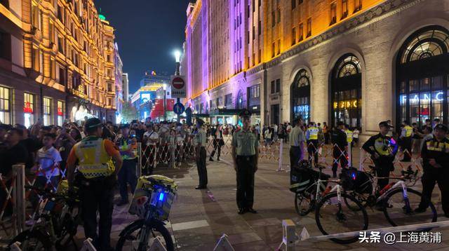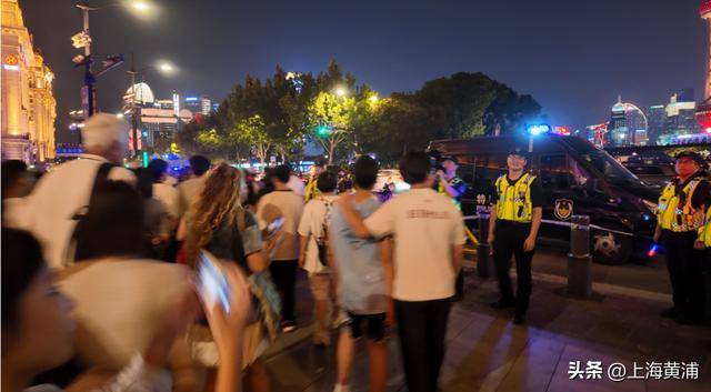 在江堤上,铁马整齐排列,将整个外滩区域划分得井井有条。武警和民警不间断地进行巡逻,随时准备应对可能出现的突发事件。同时,江堤的各个出入口都实行了单向通行的调整措施,确保人流的有序流动。