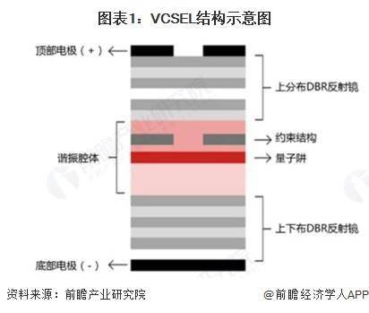 VCSEL全称Vertical-cavity Surface-emitting Laser,是垂直腔面发射激光器,本质上是一种半导体激光器,激光器是用来发射激光的装置,而半导体激光器则是以半导体材料为工作物质发射激光的器件。基本结构是-个“三明治”结构,由上下两个DBR反射镜和有源区这三部分组成。上下两个DBR反射镜与有源区构成谐振腔。有源区由几个量子阱组成,作为VCSEL的核心部分,决定着器件的阅值增益、激射波长等重要参数。高反射率的DBR由多层介质薄膜组组成,实现对光的反镑。为得到较小的值电流,DBR反射镜的反射率-般在99.5%以上。