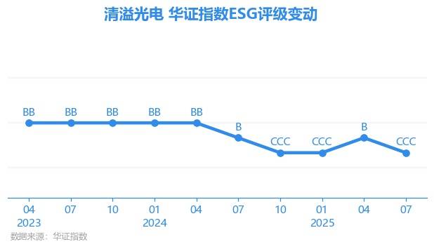日前,华证指数公布了新一期(2025年7月31日)的ESG评级结果,清溢光电(688138.SH)获得CCC评级(华证指数评级为C起至AAA九档,C为最低档,AAA为其最高一级评级/AA为其第二档),上一期(2025年4月30日)ESG评级为B。本期ESG评级在529家电子设备、仪器和元件行业A股上市公司中排名第430(上一期排名第400)。
