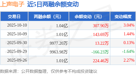 证券之星消息,10月10日,上声电子(688533)融资买入1465.6万元,融资偿还1157.7万元,融资净买入307.9万元,融资余额1.04亿元,近3个交易日已连续净买入累计464.81万元。