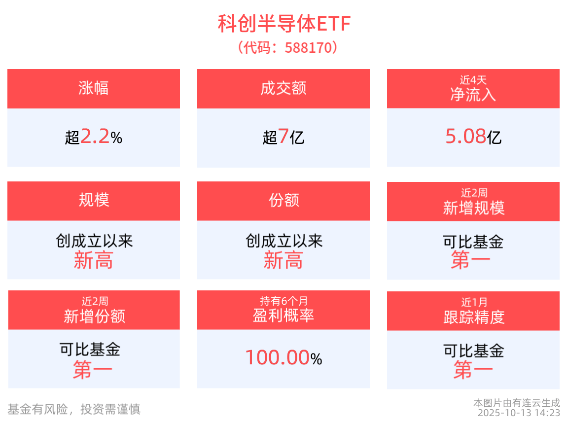 涨超2.2%,科创半导体ETF(588170)近4个交易日净流入5.08亿元