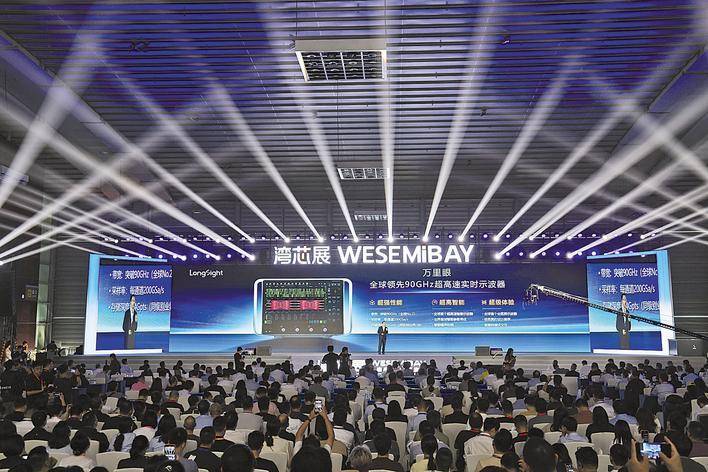据新华社深圳10月15日电 15日于深圳举行的2025湾区半导体产业生态博览会(湾芯展)上,我国自主研发的新一代超高速实时示波器正式发布,其带宽突破90GHz、达到国际先进水平,这标志着全球电子通信产业迎来超高速信号“中国标尺”。