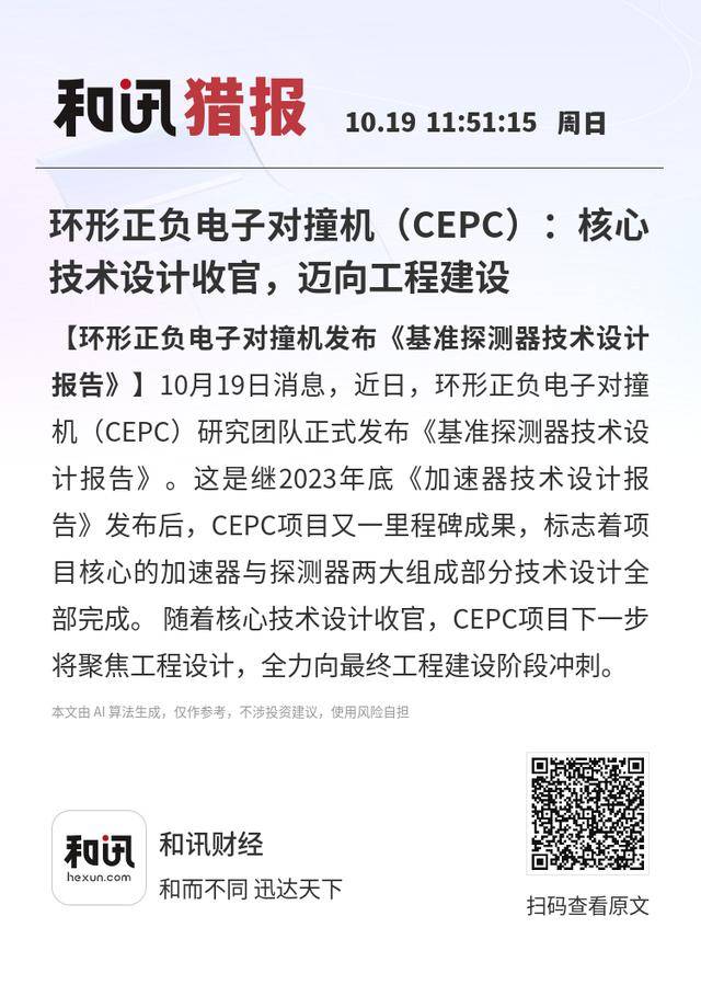 【环形正负电子对撞机发布《基准探测器技术设计报告》】10月19日消息,近日,环形正负电子对撞机(CEPC)研究团队正式发布《基准探测器技术设计报告》。这是继2023年底《加速器技术设计报告》发布后,CEPC项目又一里程碑成果,标志着项目核心的加速器与探测器两大组成部分技术设计全部完成。随着核心技术设计收官,CEPC项目下一步将聚焦工程设计,全力向最终工程建设阶段冲刺。