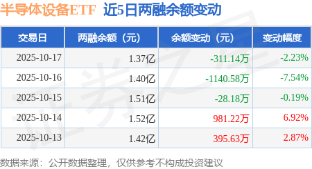证券之星消息,10月17日,半导体设备ETF(561980)融资买入1426.57万元,融资偿还1737.71万元,融资净卖出311.14万元,融资余额1.37亿元。