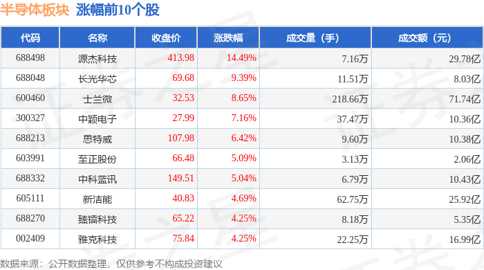 证券之星消息,10月20日半导体板块较上一交易日上涨1.05%,源杰科技领涨。当日上证指数报收于3863.89,上涨0.63%。深证成指报收于12813.21,上涨0.98%。半导体板块个股涨跌见下表: