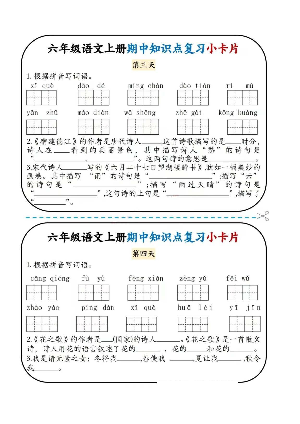 2025年秋季小学一年级、二年级、三年级、四年级学生将使用2024新课标改版后新版教材!为了方便广大学生准备期中考试,我们整理了新版语文期中知识点复习小卡片,以图片的形式呈现给大家,希望对同学们的期中复习有所帮助。
