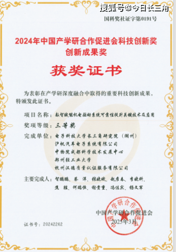 产学研合作成果获国家级认可。与沪帆汽车电子系统有限公司共同申报的《数智赋能机电驱动系统可靠性提升关键技术及应用》项目荣获中国产学研合作促进会科技创新成果奖三等奖,并入选2024年中国产学研合作优秀创新成果。本次获奖项目是由多方联合研发的双齿轮嵌件自动成型装备、执行器自动超声波焊接生产装备、电子驻车执行器及重载电子驻车执行器等系列产品。这些产品成功实现了机电驱动系统的国产化替代,为沪帆公司带来了近3亿元的经济效益。