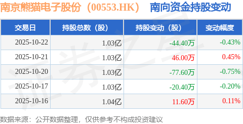 证券之星消息,10月22日南向资金减持44.4万股南京熊猫电子股份(00553.HK)。近5个交易日中,获南向资金减持的有3天,累计净减持84.8万股。近20个交易日中,获南向资金减持的有8天,累计净减持63.4万股。截至目前,南向资金持有南京熊猫电子股份(00553.HK)1.03亿股,占公司已发行普通股的42.38%。