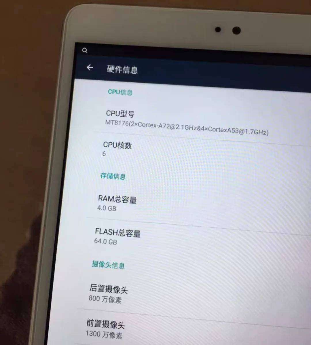 配置上,台电T8采用8.4英寸JDI 2K高分屏,分辨率是2560x1600,还是全贴合屏。搭载了联发科MT8176处理器,这是64位六核芯片,性能相当于骁龙650水平。存储组合是4G+64G,预装安卓7系统,不过摄像头有点叛逆,前摄(1300万)比后摄(800万)像素高。