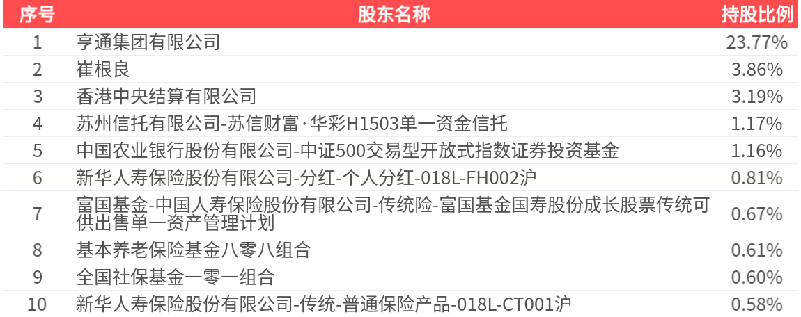 公司股东户数为19.18万户,前十大股东持股数量为8.98亿股,占总股本比例为36.42%,前十大股东持股情况如下: