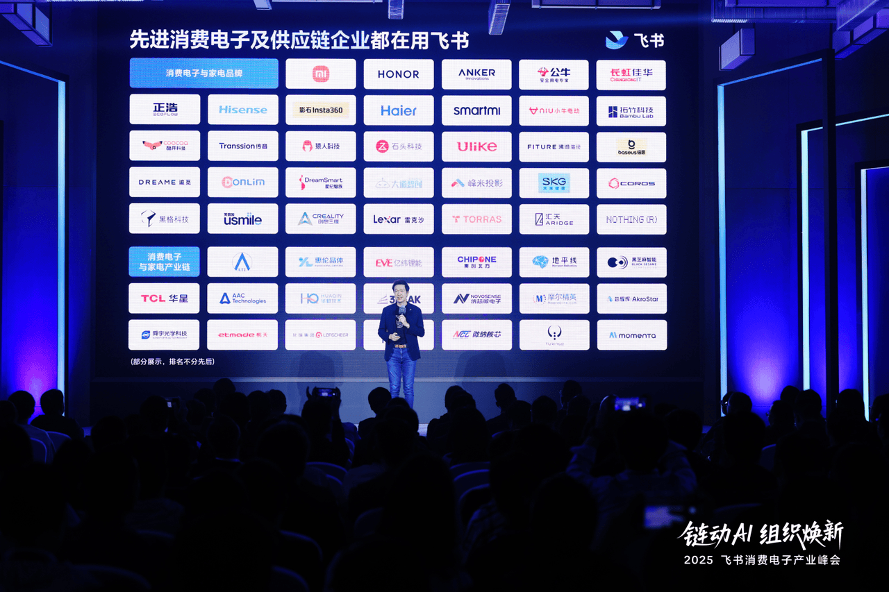 近日,以“链动AI,组织焕新”为主题的飞书消费电子产业峰会在深圳召开,峰会汇聚了荣耀、安克创新、宁德新能源、惠伦晶体、华润集团、生益电子等消费电子及产业链企业,共同探讨AI时代下,如何利用数字化工具重塑被“速度与效率”反复定义的行业,实现更高维度的协同。