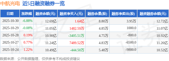 中航光电融资融券信息显示,融资方面,当日融资买入2.92亿元,融资偿还1.28亿元,融资净买入1.64亿元,净买入额两市排名第17。融券方面,融券卖出4.26万股,融券偿还3100.0股,融券余量8.8万股,融券余额309.68万元。融资融券余额12.72亿元。