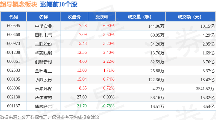 证券之星消息,11月3日超导概念板块较上一交易日下跌0.16%,国缆检测领跌。当日上证指数报收于3976.52,上涨0.55%。深证成指报收于13404.06,上涨0.19%。超导概念板块个股涨跌见下表: