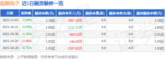 超颖电子融资融券信息显示,融资方面,当日融资买入9193.58万元,融资偿还6306.4万元,融资净买入2887.18万元。融券方面,融券卖出0.0股,融券偿还0.0股,融券余量0.0股,融券余额0.0万元。融资融券余额2.18亿元。