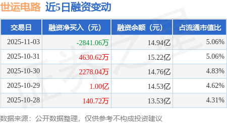 证券之星消息,11月3日,世运电路(603920)融资买入7876.27万元,融资偿还1.07亿元,融资净卖出2841.06万元,融资余额14.94亿元。