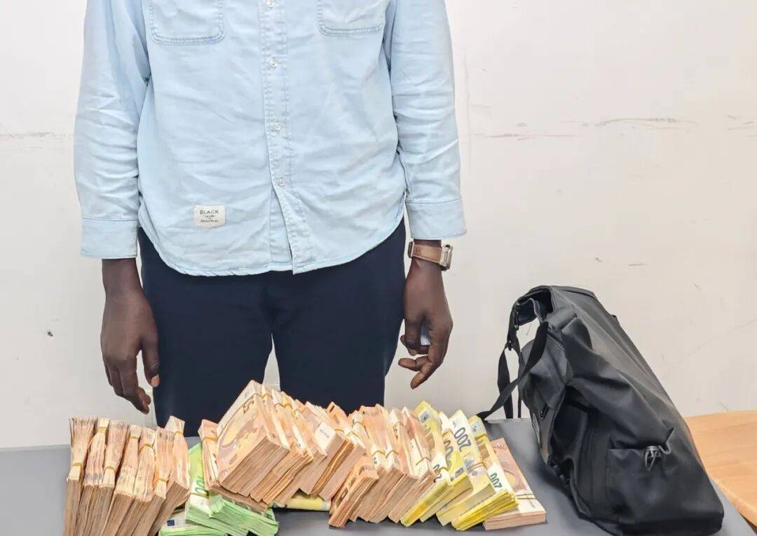 近日,广州海关在广州白云机场口岸旅检渠道查获1名旅客违规超量携带货币进境,现场查获未向海关申报的欧元22.4万元,折合人民币超186万元。