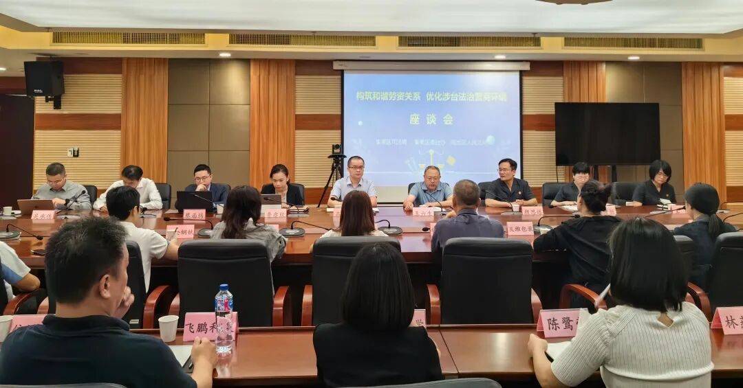 此次座谈会旨在搭建一个法院、台办、司法行政机关与台资企业之间直面沟通的平台,精准把脉当前涉台劳动争议解决中的难点、堵点问题,凝聚共识,协同发力。