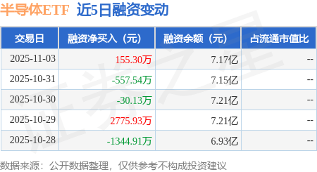 证券之星消息,11月3日,半导体ETF(512480)融资买入2.15亿元,融资偿还2.13亿元,融资净买入155.3万元,融资余额7.17亿元。