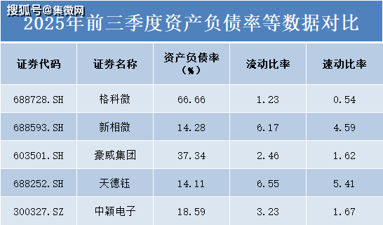豪威集团和中颖电子的资产负债率处于中等水平,分别为37.34%和18.59%,体现了相对平衡的资本结构。