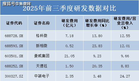 从研发费用总额来看,豪威集团以21.05亿元的研发投入规模遥遥领先,展现出行业龙头对技术研发的重视。格科微研发费用7.18亿元,位居第二。相比之下,新相微研发投入规模相对较小,为0.52亿元。