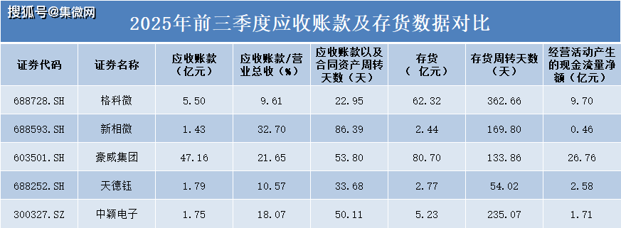 从应收账款占营业收入比重来看,新相微占比最高,达32.7%,应收账款金额为1.43亿元。这表明该公司销售收入中有近三分之一尚未实际回款,可能面临一定的回款压力。