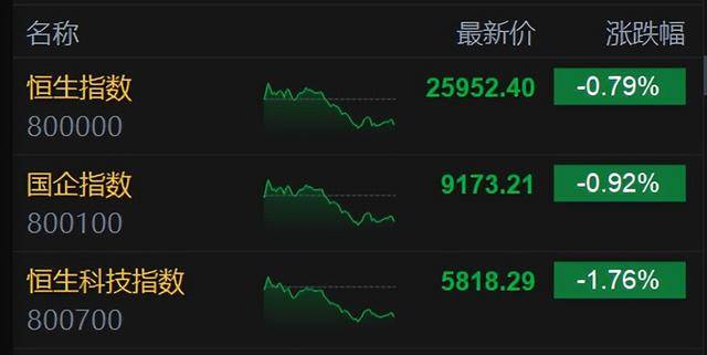格隆汇11月4日|港股三大指数午后跳水明显,恒生科技指数一度大跌至3%,最终收跌1.76%,恒生指数、国企指数分别下跌0.79%及0.92%,市场情绪表现十分低迷。