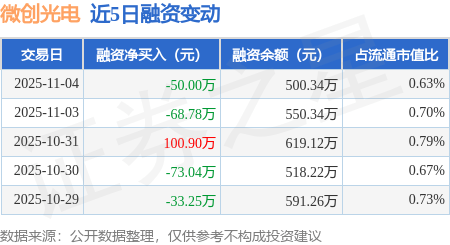 证券之星消息,11月4日,微创光电(920198)融资买入36.75万元,融资偿还86.75万元,融资净卖出50.0万元,融资余额500.34万元。