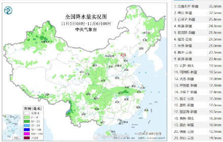 昨天,新疆今年下半年来最强降雪登场,乌鲁木齐于昨天下午转为纯雪,24小时降水量35.6毫米,排名全国第一,并打破当地11月单日降水记录,纯雪量大于28毫米,截至今晨8时积雪深度达到20厘米。这是乌鲁木齐下半年来首场大暴雪(应该能达到特大暴雪级别),如此厚的积雪是首次这么早出现。目前乌鲁木齐降雪仍在持续,预计傍晚左右结束。