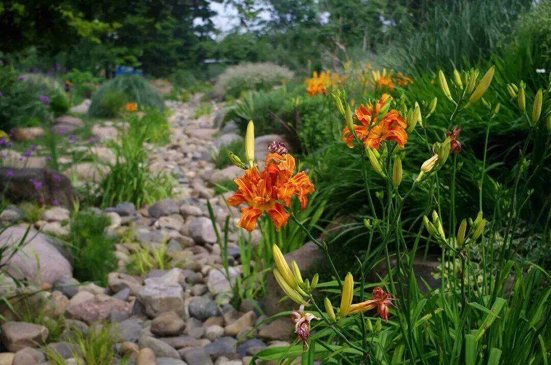 辰山植物园是华东地区知名的萱草展示区,收集了200多个品种。这里的萱草花期长达两个月,从5月中下旬持续到7月中旬,晚花品种甚至能开到7月下旬。园艺师巧妙地将不同花色的萱草搭配种植,形成“橙红渐变带”“黄白相间区”等景观,夏季还会举办萱草主题花展,结合艺术装置讲解萱草的观赏价值。