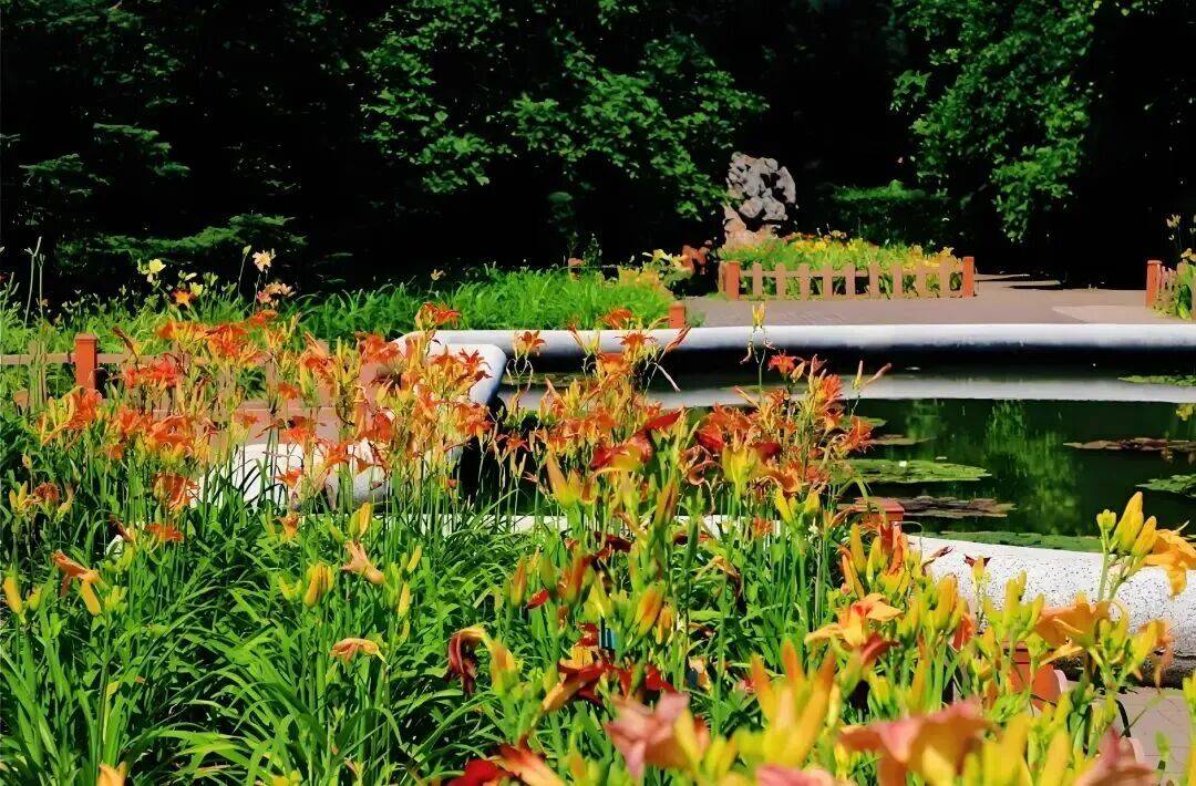 作为北方萱草品种最丰富的园区之一,国家植物园引种了200余个萱草品种,涵盖单色、双色、多色等所有色系,花型从小巧的心型到舒展的蜘蛛型应有尽有。6-7月花期,木兰园、宿根花卉园和樱桃沟栈道旁都是最佳观赏点,漫步园中,还能通过科普牌了解萱草的育种历史。