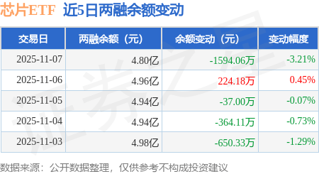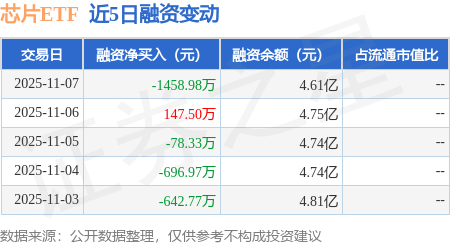 证券之星消息,11月7日,芯片ETF(159995)融资买入5671.59万元,融资偿还7130.57万元,融资净卖出1458.98万元,融资余额4.61亿元。